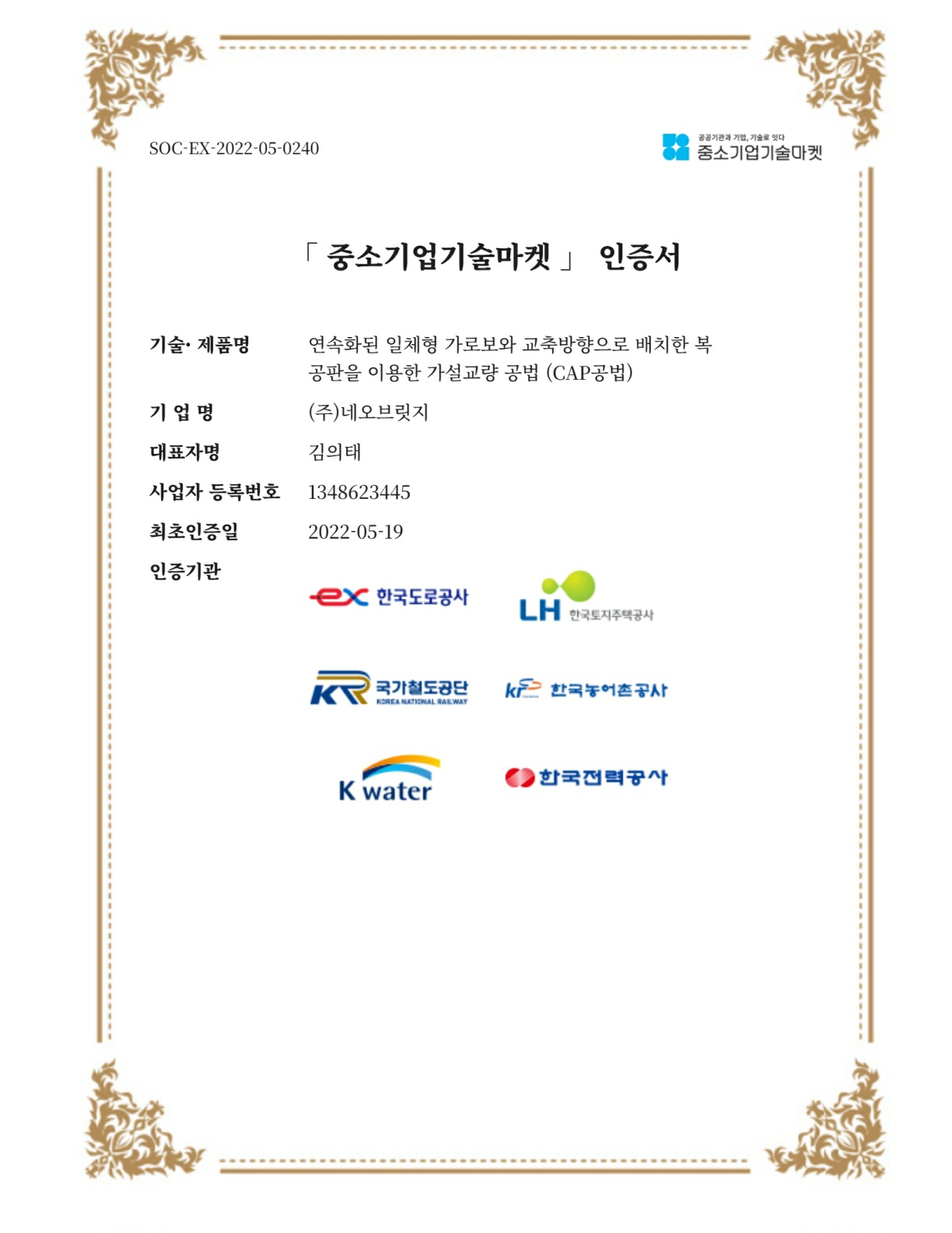 건설신기술지정증서